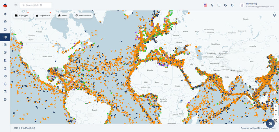 Live tracking of all managed vessels worldwide