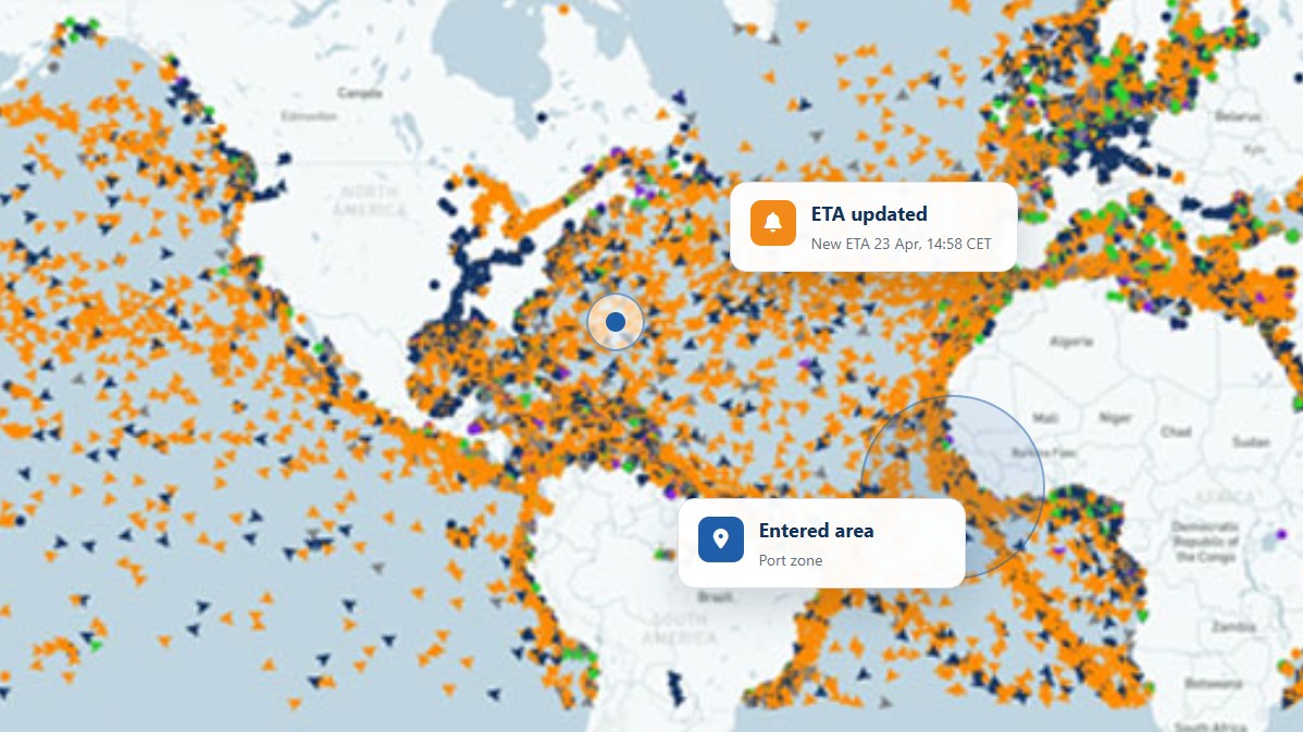 Get notified instantly when ETAs change or vessels enter your area of interest.